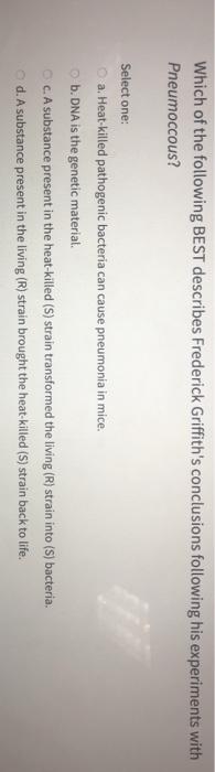 A heritable substance from a strain of dead bacteria caused a change in the characteristics of a. Because we need the bacteria to express the gene of interest. What best describes a bacteriophage.
